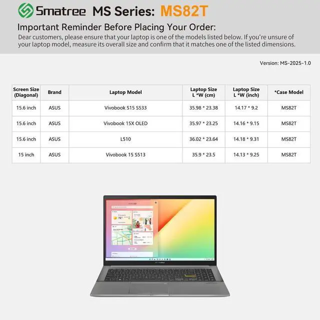 ASUS Laptops: smatree has more than 20 sizes of hard EVA protective sleeve case customized for ASUS laptops. If you're not sure which model of case is fit for your laptop, please feel free to contact our customer service