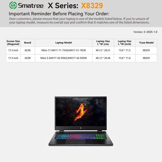 Compatibility: designed to perfectly fit for 17.3 inch Acer Nitro 5 Gaming Laptop - AN517-42-R5KZ; 17.3 inch Acer Nitro 5 Gaming Laptop - AN517-42-R35M; 17.3 inch Acer Nitro 17 AN17-71-75VK Gaming Laptop; 17.3 inch Acer Nitro 17 AN17-51-70CB Gaming Laptop ^^