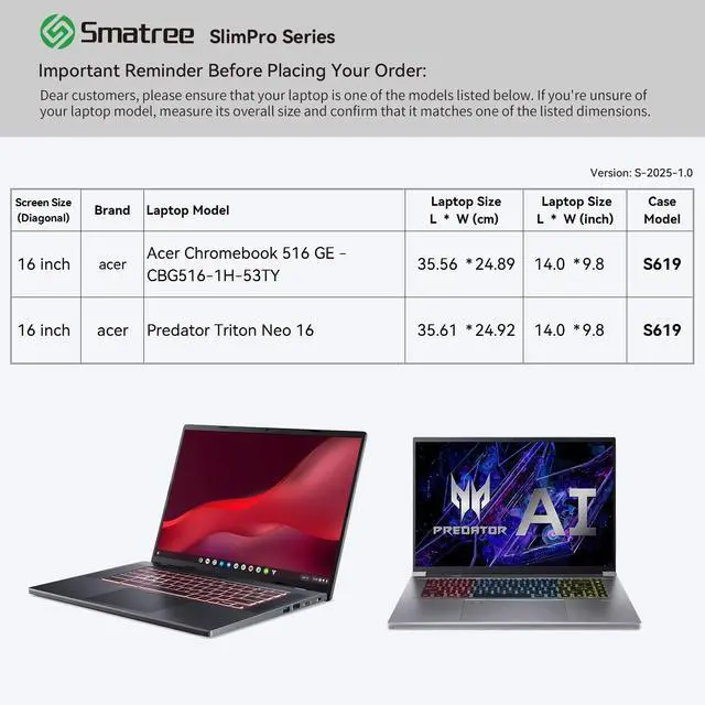 Weight: 438g ^^ Specifically designed for 16 inch Acer Chromebook 516 GE-CBG516-1H-53TY; 16 inch Acer Predator Triton Neo 16 ^^ Patented Super-Corner Design;