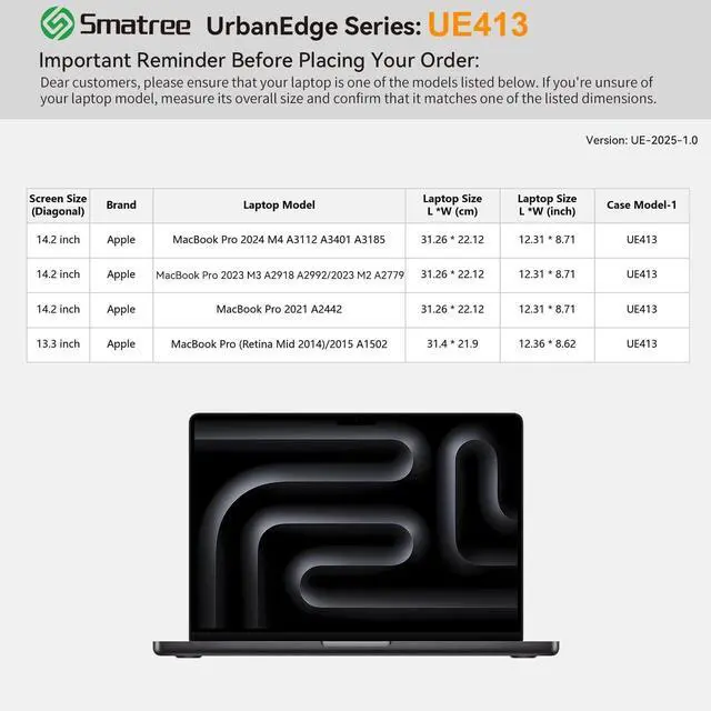 Weight: 362g ^^ Perfect fit for 14.2 inch Apple MacBook Pro M5 2025; 14.2 inch Apple MacBook Pro 2024 M4 A3112 A3401 A3185; 14.2 inch Apple MacBook Pro 2023 M3 A2918 A2992/2023 M2 A2779; 14.2 inch Apple MacBook Pro 2021 A2442; 13.3 inch Apple MacBook Pro 2015/2014 A1502. Tailored dimensions provide a snug fit that minimizes movement, ensuring your laptop stays secure during travel or daily use ^^