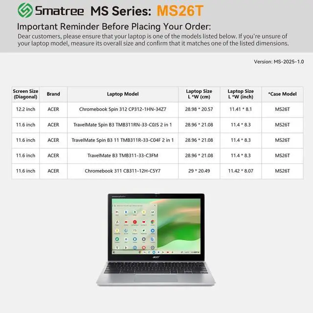 Compatibility: designed to perfectly fit for 12.2 inch Acer Chromebook Spin 312- CP312-1HN-34Z7 Laptop; 11.6 inch Acer Chromebook 311 - CB311-12H-C5Y7 Laptop; 11.6 inch Acer TravelMate B3 TMB311-33-C3FM Laptop; 11.6 inch Acer TravelMate Spin B3 11 TMB311R-33-C04F/C0JS 2 in 1 Laptop ^^