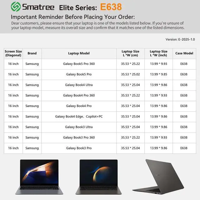 Major Brands: Smatree offers nearly 30 custom-sized sleeve options specifically for Samsung laptops, along with a wide selection for other popular brands such as Acer, ASUS, HP, MSI, DELL, Microsoft, Apple, Razer and others. Our sleeves are meticulously designed to fit your exact laptop model, providing a superior alternative to generic cases ^^