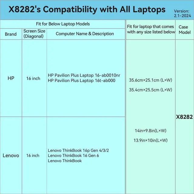 Model No.: X8282; internal dimensions of the case: 35.9 x 25.9 x 2.7 cm ( 14.1 x 10.2 x 1.1 inch) ^^