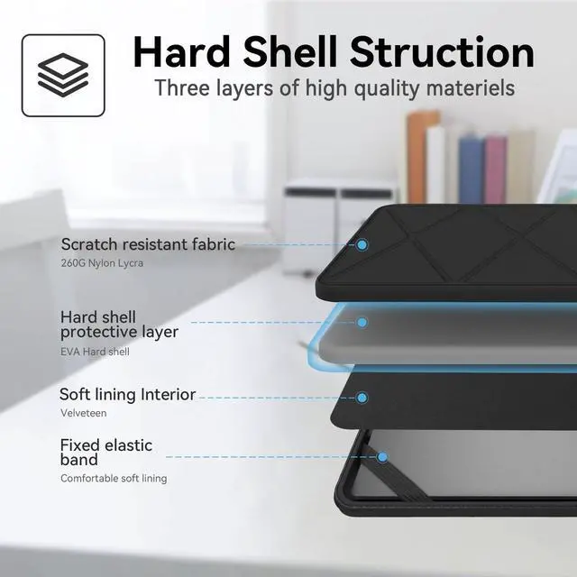 Anti-Shock: EVA hard sleeve and features internal upgraded shock resistant padding layer, protect your laptop from inadvertent collision and accidental scratches when put in backpack or suitcase ^^