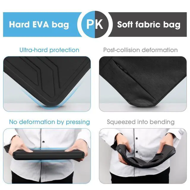 Anti-Shock & Waterproof: EVA hard sleeve and features internal upgraded shock resistant padding layer, protect your laptop from inadvertent collision and accidental scratches when put in backpack or suitcase. The Smatree sleeve is made of durable 1600d nylon, it obstructs water effectively. Don't worry about splashing water, washable when laptop sleeve case becomes dirty ^^