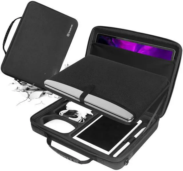 Portable: Hard protective laptop case Bag for Macbook, Apple Magic Mouse 2, power adapter, Apple pencil and more. With carrying handle and adjustable detachable shoulder strap ^^