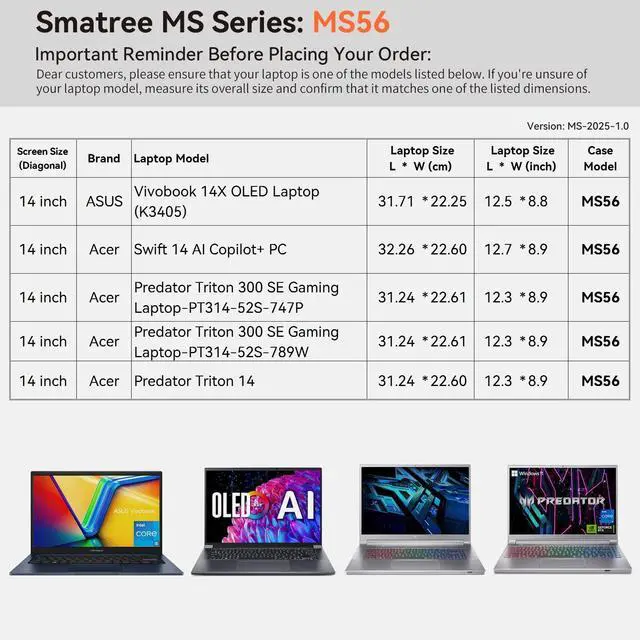Compatibility: designed to perfectly fit for 14 inch ASUS Vivobook 14X OLED Laptop (K3405) Laptop; 14 inch Acer Swift 14 AI Copilot+ PC; 14 inch Acer Predator Triton 300 SE Gaming Laptop - PT314-52S-747P; 14 inch Acer Predator Triton 300 SE Gaming Laptop-PT314-52S-789W; 14 inch Acer Predator Triton 14 ^^