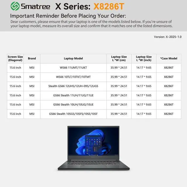 MSI Laptops: Smatree has more than 20 sizes of hard EVA protective sleeve case customized for MSI laptops. If you're not sure which model of case is fit for your laptop, please feel free to contact our customer service