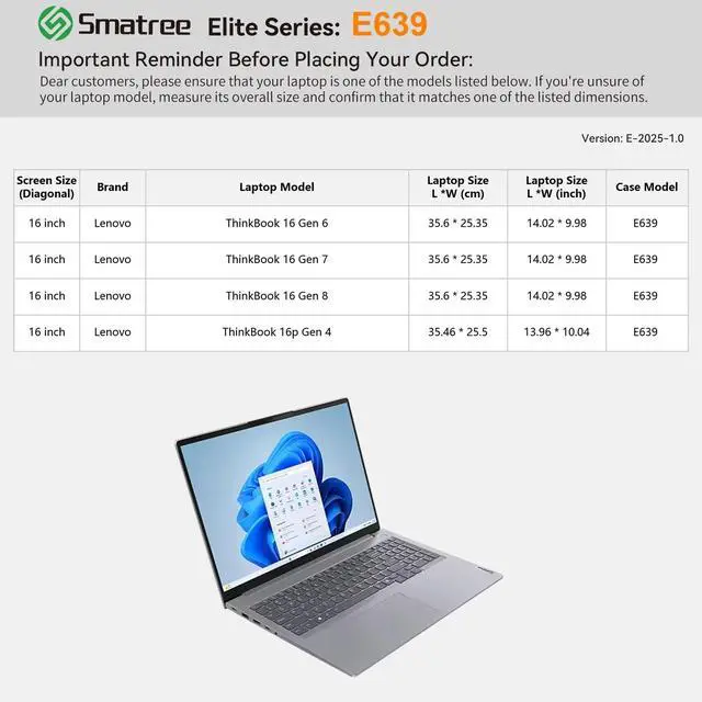 Super-Corner Design: Our patented Super-Corner impact protection technology is engineered to safeguard your laptop from accidental drops and bumps. This unique design delivers superior protection without adding unnecessary bulk, ensuring your device remains secure in a sleek, perfectly sized sleeve ^^ Designed for 16 inch Lenovo ThinkBook 16 Gen 8/Gen 7/Gen 6, for ThinkBook 16p Gen 4 Laptop. Our sleeve provides a precise, secure fit that minimizes movement and maximizes protection. Enjoy a tailored, snug sleeve experience that standard cases can't offer ^^ Wide Range of