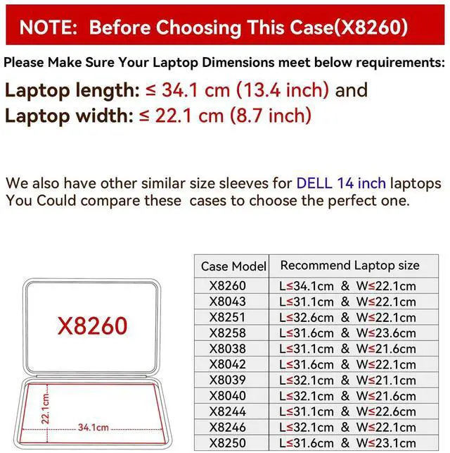 Model No.: X8260; internal dimensions of the case: 34.5 x 22.3 x 3.4 cm ( 13.6 x 8.8 x 1.34 inch) ^^