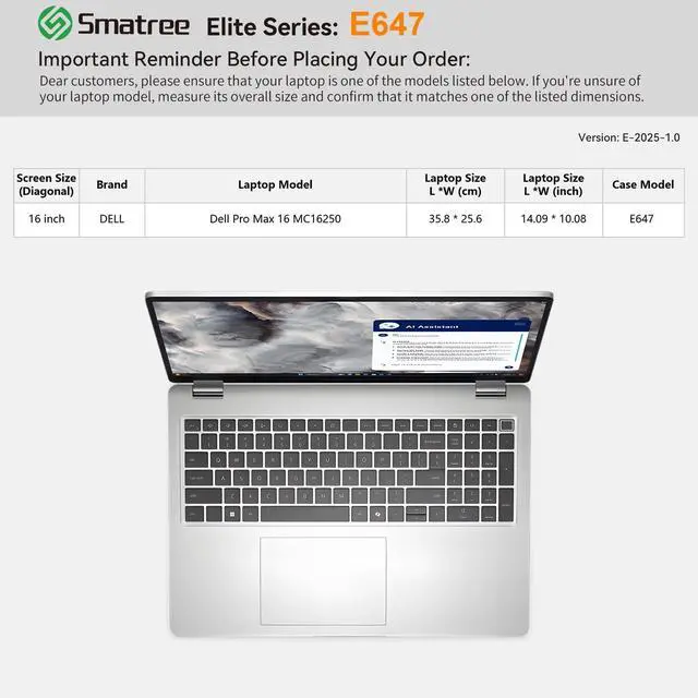 Custom Sizes: Smatree offers nearly 100 tailored sleeve options for DELL laptops and many more for brands like Lenovo, Acer, HP, MSI, Samsung, Microsoft, Apple, ASUS, Razer and others. Our sleeves are precisely crafted to match the dimensions of your laptop, providing a perfect fit that generic cases can't achieve ^^