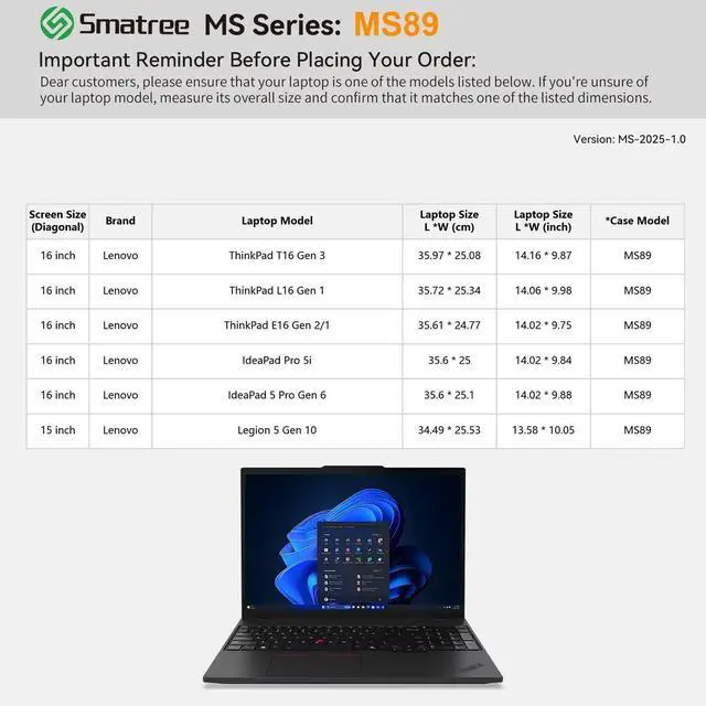 Lenovo Laptops: smatree has more than 20 sizes of hard EVA protective sleeve case customized for Lenovo laptops. If you're not sure which model of case is fit for your laptop, please feel free to contact our customer service