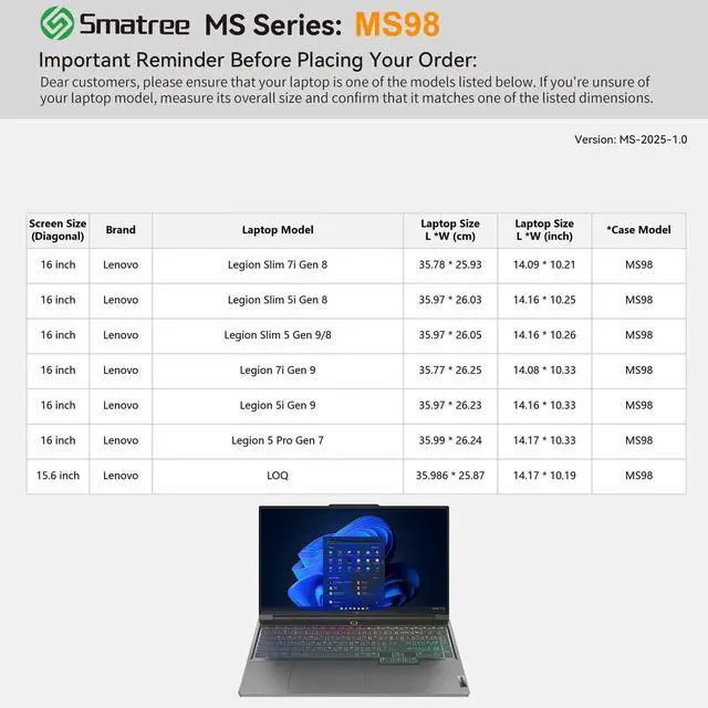 Lenovo Laptops: smatree has more than 20 sizes of hard EVA protective sleeve case customized for Lenovo laptops. If you're not sure which model of case is fit for your laptop, please feel free to contact our customer service