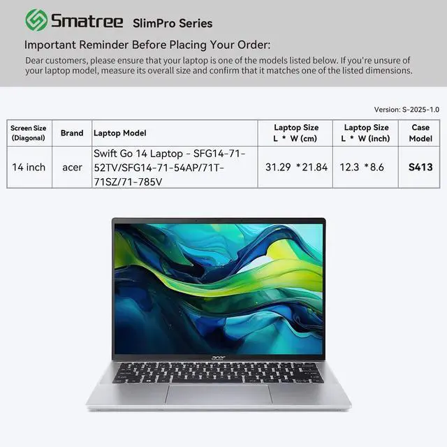 Weight: 373g ^^ Specifically designed for 14 inch Acer Swift Go 14 Laptop SFG14-71-52TV/71-54AP/71T-71SZ/71-785V ^^ Patented Super-Corner Design;