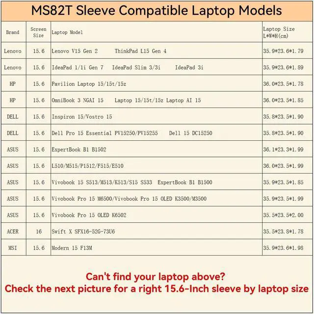 Compatibility: fit for 15.6" HP Pavilion 15 Laptop PC 15, Pavilion Laptop 15z/15t; 15.6" HP Laptop 15/15t/15z/AI 15; 15.6" HP OmniBook 3 NGAI 15/Next Gen AI PC; 15.6" ASUS M515/P1512/F515/E510/L510; 15.6" ASUS Vivobook Pro 15 M6500/OLED K3500/OLED M3500/K6502; 15.6" ASUS Vivobook 15 M513/K513/S513/S15 S533; 15.6" ASUS ExpertBook B1 B1500/B1502; 15.6" Lenovo IdeaPad 3i/Slim 3/Slim 3i; 16 inch Acer Swift X SFX16-52G-73U6 ^^