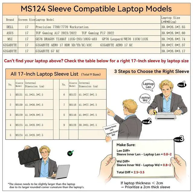 • Smatree Pioneering Custom-Sized Protection for Every Laptop. Over 100 precision-fit sizes engineered for 2,000+ laptop models. If you're not sure which model of sleeve is fit for your laptop, please check the Product Description. We provide a sleeve