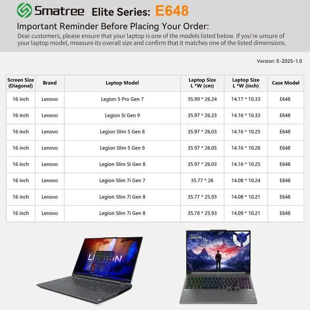 Super-Corner Design: Our patented Super-Corner impact protection technology is engineered to safeguard your laptop from accidental drops and bumps. This unique design delivers superior protection without adding unnecessary bulk, ensuring your device remains secure in a sleek, perfectly sized sleeve ^^ Specially crafted for 16 inch Legion Slim 7i Gen 8/7, for 16 inch Legion Slim 5i Gen 8, for 16 inch Legion Slim 5 Gen 9/8, for 16 inch Lenovo Legion 5 Pro Gen 7/5i Gen 9, this sleeve offers a precise, tailored fit that keeps your device secure. Say goodbye to ill-fitting, oversized sleeves, and enjoy a perfect fit that enhances your laptops safety ^^ Tailor-Made Sleeves for Lenovo and