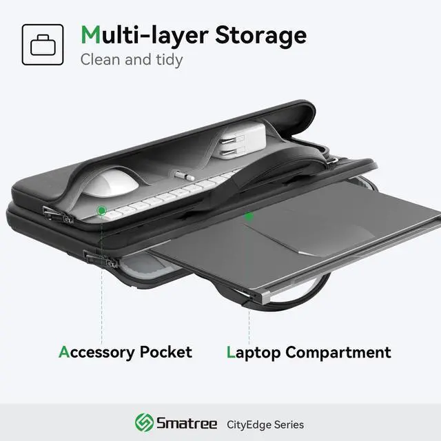 All-round Protection: Shock-absorbing points are distributed inside the bag to reduce external impact, PC compartment embedded with patented design Super-Corner to resist collision and squeezing, safely protects the laptop. External accessory pocket on the outside prevents impact, water and scratches, provides comprehensive protection for your laptop and accessory ^^ Military-Grade Shield;