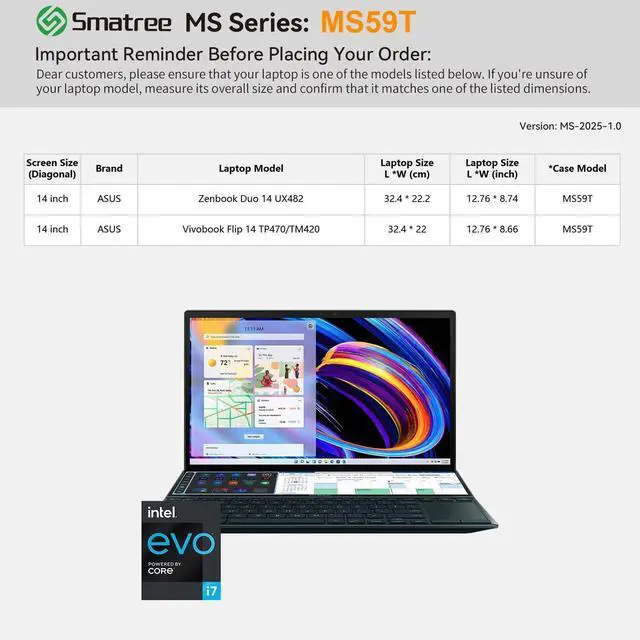 ASUS Laptops: smatree has more than 20 sizes of hard EVA protective sleeve case customized for ASUS laptops. If you're not sure which model of case is fit for your laptop, please feel free to contact our customer service
