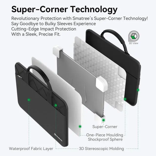 Custom Sizes: Smatree offers nearly 20 tailored sleeve options for HP laptops and many more for brands like Lenovo, ASUS, DELL, MSI, Samsung, Microsoft, Apple, Acer, Razer and others. Our sleeves are precisely crafted to match the dimensions of your laptop, providing a perfect fit that generic cases cant achieve ^^ Durable,
