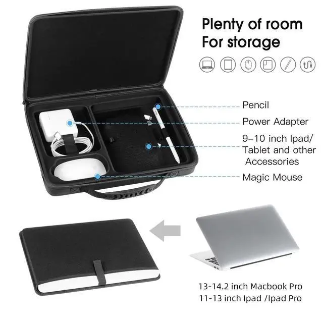 Portable: hard protective laptop case bag compatible for macbook, apple magic mouse 2, power adapter, apple pencil and more. With carrying handle and adjustable detachable shoulder strap. Can be easily carried ^^