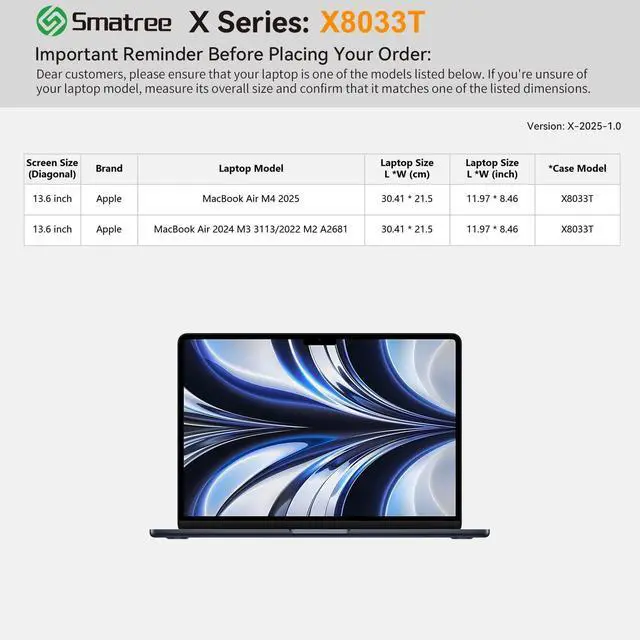 Compatibility: designed to perfectly fit for 13.6 inch Apple Macbook Air M4 2025; for 13.6 inch Apple MacBook Air M3 2024/A3113; for 13.6 inch Apple MacBook Air M2 2022/A2681 Laptop ^^