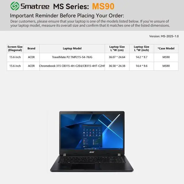 Acer Laptops: smatree has more than 20 sizes of hard EVA protective sleeve case customized for Acer laptops. If you're not sure which model of case is fit for your laptop, please feel free to contact our customer service
