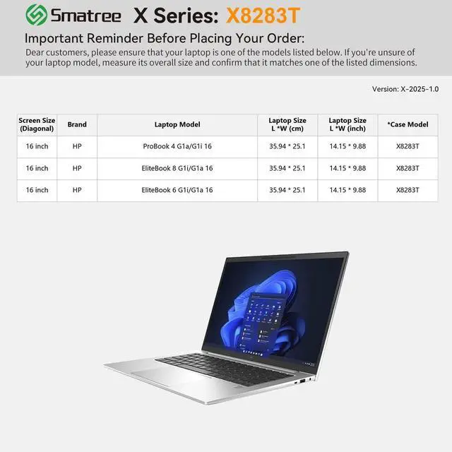 HP Laptops: Smatree has more than 20 sizes of hard EVA protective sleeve case customized for HP laptops. If you're not sure which model of case is fit for your laptop, please feel free to contact our customer service