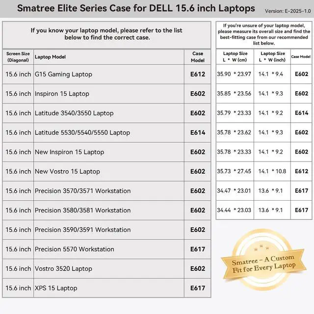 Custom Sizes: Smatree offers nearly 20 tailored sleeve options for DELL laptops and many more for brands like Lenovo, ASUS, HP, MSI, Samsung, Microsoft, Apple, Acer, Razer and others. Our sleeves are precisely crafted to match the dimensions of your laptop, providing a perfect fit that generic cases cant achieve ^^ Durable,