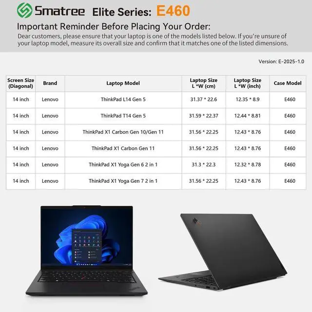 Protection -Super-Corner Technology: Our patented Super-Corner design provides outstanding impact protection, safeguarding your laptop from accidental bumps and drops. This cutting-edge design eliminates the need for excessive padding, ensuring top-tier protection in a sleek, perfectly sized sleeve ^^ Specially crafted for 14 inch Lenovo ThinkPad X1 Carbon Gen 11/10; 14 inch Lenovo ThinkPad X1 Yoga Gen 7/6 2 in 1; 14 inch Lenovo ThinkPad T14 Gen 5; 14 inch Lenovo ThinkPad L14 Gen 5, this sleeve offers a precise, tailored fit that keeps your device secure. Say goodbye to ill-fitting, oversized sleeves, and enjoy a perfect fit that enhances your laptops safety ^^ Extensive Custom Sizes for
