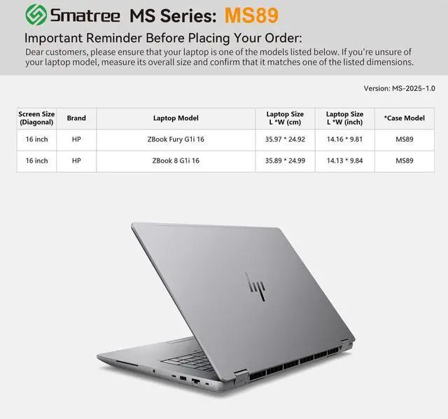 HP Laptops: Smatree has more than 20 sizes of hard EVA protective sleeve case customized for HP laptops. If you're not sure which model of case is fit for your laptop, please feel free to contact our customer service