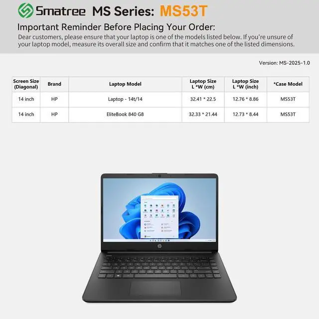 HP Laptops: smatree has more than 20 sizes of hard EVA protective sleeve case customized for HP laptops. If you're not sure which model of case is fit for your laptop, please feel free to contact our customer service