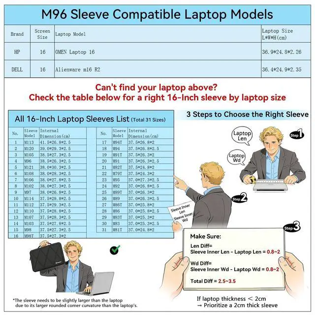 Splash-Resistant: the smatree sleeve is made of durable 280g nylon lycra, it obstructs water effectively. Don't worry about splashing water, washable when laptop sleeve case becomes dirty ^^ Smatree Pioneering Custom-Sized Protection for Every Laptop. Over 100 precision-fit sizes engineered for 2, 000+ laptop models. If you're not sure which model of sleeve is fit for your laptop, please check the Product Description. We provide a sleeve model list for most 16-inch laptops; check it to find your ideal fitting sleeve.