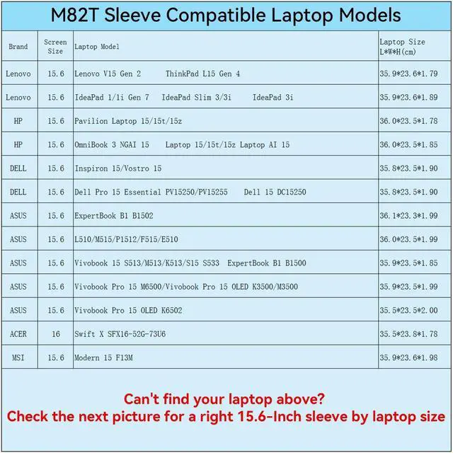 Compatibility: fit for 15.6" HP Pavilion 15 Laptop PC 15, Pavilion Laptop 15z/15t; 15.6" HP Laptop 15/15t/15z/AI 15; 15.6" HP OmniBook 3 NGAI 15/Next Gen AI PC; 15.6" ASUS M515/P1512/F515/E510/L510; 15.6" ASUS Vivobook Pro 15 M6500/OLED K3500/OLED M3500/K6502; 15.6" ASUS Vivobook 15 M513/K513/S513/S15 S533; 15.6" ASUS ExpertBook B1 B1500/B1502; 15.6" Lenovo IdeaPad 3i/Slim 3/Slim 3i; 16 inch Acer Swift X SFX16-52G-73U6 ^^
