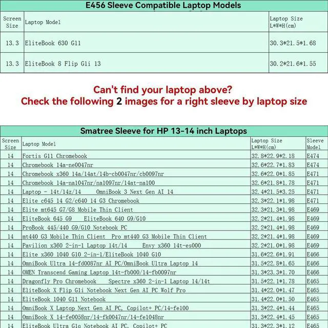 Compatibility: fit for 13.3" HP EliteBook 630 G11; 13.3" HP EliteBook 8 Flip G1i 13 ^^ Smatree offers nearly 90 tailored sleeve options for most laptops, with additional sizes compatible with major brands including ASUS, Lenovo, DELL, HP, Samsung, Microsoft, Apple, and Acer. Our sleeves are precisely crafted to match your laptops exact dimensions, delivering a perfect fit that generic cases cannot provide. If you're unsure which sleeve model fits your laptop, please refer to the product description ^^ Durable,