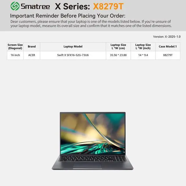 Acer Laptops: Smatree has more than 20 sizes of hard EVA protective sleeve case customized Acer laptops. If you're not sure which model of case is fit for your laptop, please feel free to contact our customer service