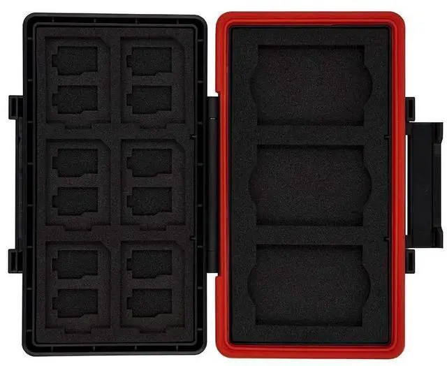 Rugged and durable case designed to protect XQD, CFexpress type-B, SD, and micro SD memory cards from damage due to water, dust, shock, and other hazards during travel and outdoor activities. ^^ Made of tough polycarbonate material with molded foam inserts to keep your memory cards snug and secure, preventing them from moving around and getting damaged during transit. ^^ Holds up to 2 XQD or CFexpress type-B cards and up to 8 SD or micro SD cards, providing ample storage space for your valuable photos and videos. ^^ Compact size makes it easy to store in a backpack or camera bag, and the case includes a small loop for attaching a lanyard or other carrying strap, making it easy to keep it within reach at all times.