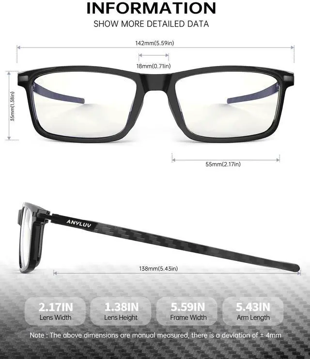 [(Advanced Blue Light Filtering)] ANYLUV blue light glasses men can effectively filter out most harmful blue light, effectively shielding your eyes from harmful rays emitted by screens. Enjoy a more comfortable viewing experience while protecting your eye health.