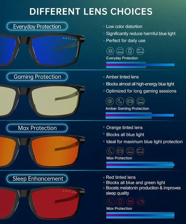 [(HD Visual Experience)] Featuring advanced technology, ANYLUV blue light blocking glasses ensure that you experience vibrant colors without the heavy tint found in other brands. Enjoy clear visuals while protecting your eyes, whether you're working, gaming, or just browsing.