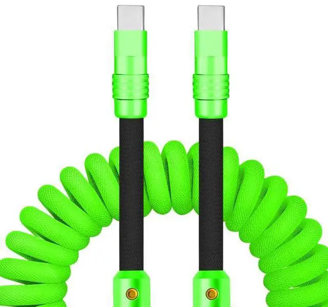 chubbycable Curly Chubby - 240W Coiled USB C Cable Spring Retractable Fast Charging Cable for Car Compatible with CarPlay, Android Auto, Green+Black, Type-C to Type-C, 2.29FT-3.6FT