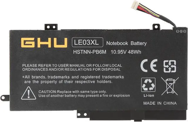 High-Quality Performance: CE, FCC, and RoHS certified, the GHU LE03XL laptop battery is equipped with top-tier, high-capacity 48Wh battery cells. Offering 11.4V for fast and efficient charging, this battery ensures superior performance and longevity with over 500 charge and discharge cycles.