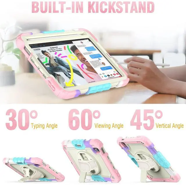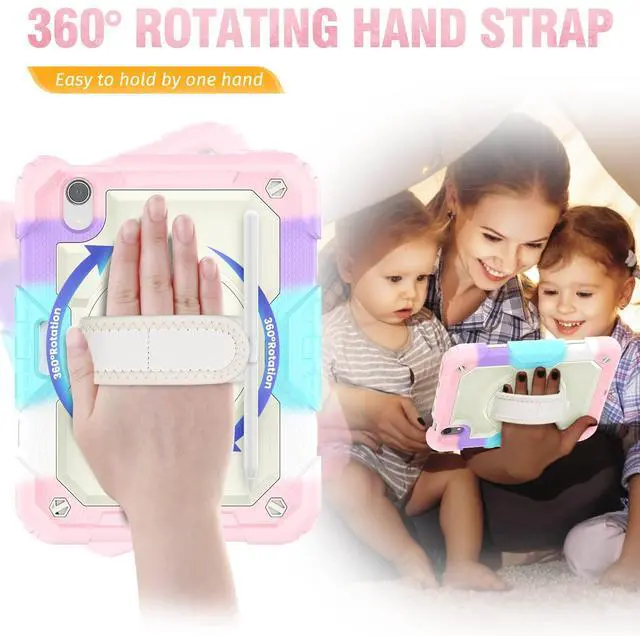 Rotating Hand Strap & Stand -- This mini 2024/2021 case provides a stable supports, with viewing/drawing/typing angles. You can hold the Pad safely by one hand and find the most comfortable viewing angle you need. also, the stand can be folded up when not in use.
