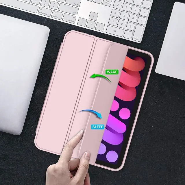 iMieet iPad Mini 7 Case 2024 (A17 Pro), iPad Mini 6 Case ( 8.3 -Inch, 2021 Model), iPad Mini 7th/6th Generation Case with Pencil Holder, Trifold Stand Smart Case with Soft TPU Back, Pink