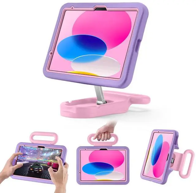 LeiJue Kids Case for iPad (A16) 11th/10th Gen 10.9 '' 2025/2022, Adjustable Portrait/Landscape Stand/Drop Proof with Handle, Child Friendly Case for iPad Air 11 (M3/M2) 2025/2024 (PurplePink)