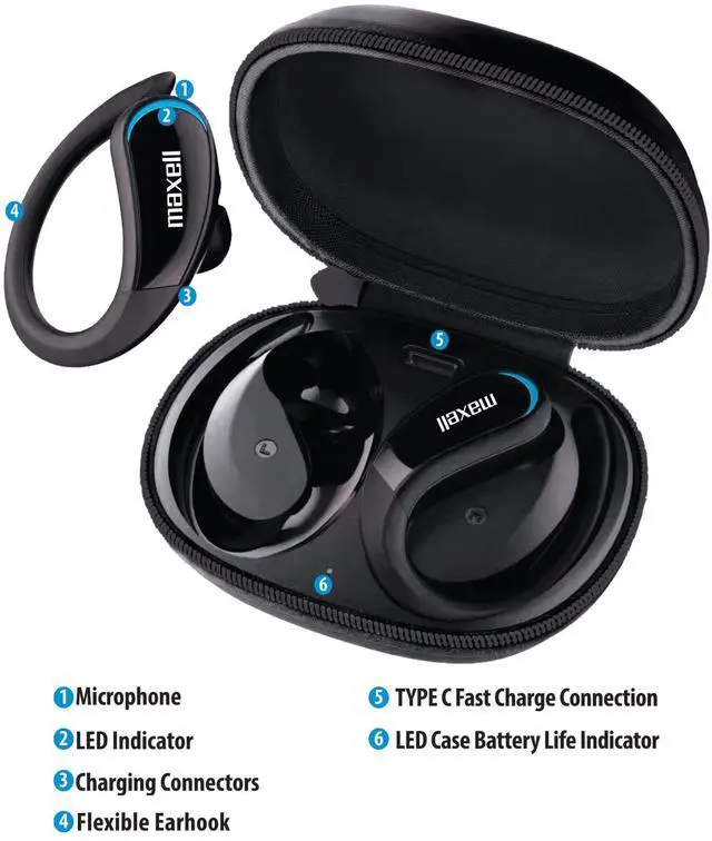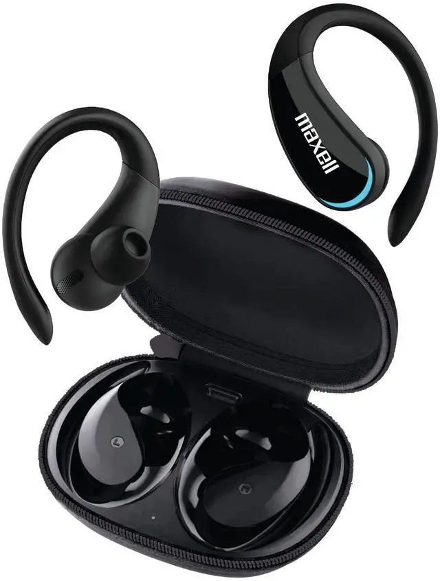 Maxell's Sync Up True Wireless Earhooks are built for security. The winged design ensures a secure fit in your ears, meaning your ear hooks will stay in during workouts, sports games, or just your typical work day. The noise isolating technology, combined with the heavy bass, help you focus while also providing great audio quality. The durable and high-speed charging case both protects and charges your ear hooks at the same time. Using the charging case, you can enjoy up to 15 hours of playtime. That is almost a full day of enjoyment.
