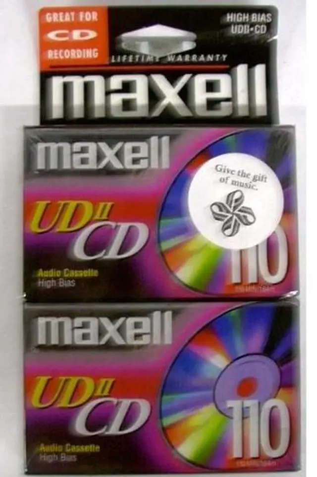 Maxell UDII CD, 110 minute blank recording cassette tape, two pack.