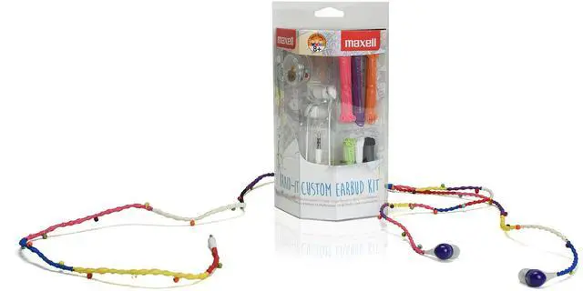 The DYI Brait-It Custom Earbud Kit lets you use the thread to make a rainbow pattern around the earphone cables and add beads were you want. These are fun and customizable earbuds that induce easy-to-follow instructions.