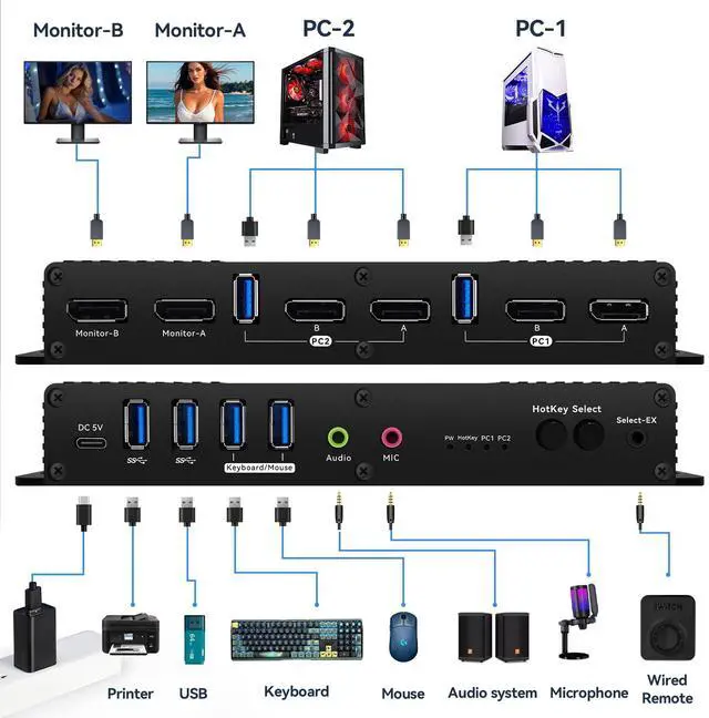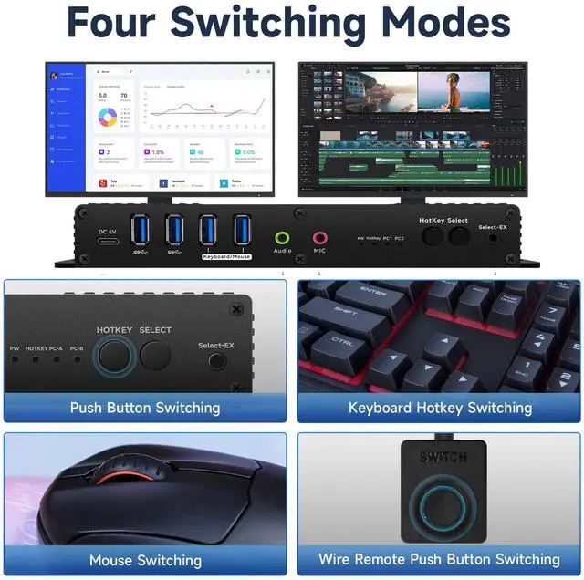 kvm switch dual monitor displayport usb 3.0