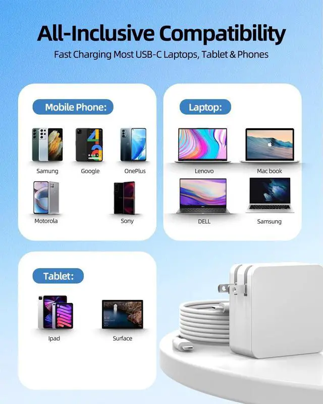 Compact Design, Office-Ready Convenience: This charger features a foldable plug and detachable 7.5ft cable, combining portability with practicality. Its compact size ensures it won't hog multiple outlets on your office power strip, while the long cable offers the flexibility you need to work comfortably at your desk or in meeting spaces.