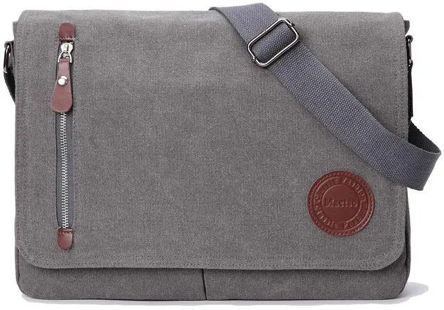 Vintage Canvas Satchel Messenger Bag for Men Women, Travel Shoulder bag 13.5" Laptop Bags Bookbag (Grey)